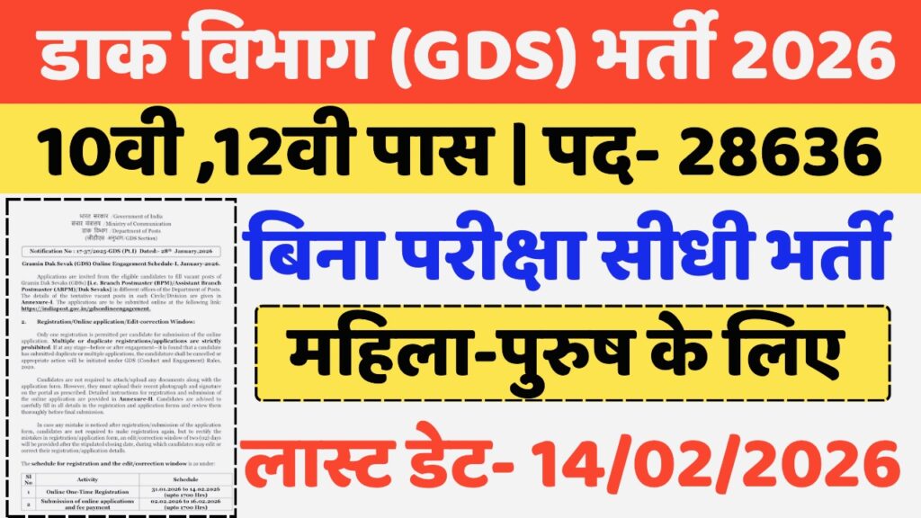 The Indian Postal Department has released a notification for 28,636 vacancies. Candidates who have passed the 10th grade can apply. If you have also passed the 10th grade, this is a great opportunity for you to apply for this vacancy. Online applications for this vacancy will be accepted from January 31, 2026, to February 14, 2026.