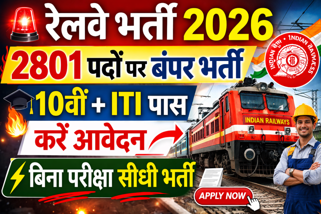 रेलवे अप्रेंटिस भर्ती 2026 युवा उम्मीदवारों के लिए एक शानदार अवसर लेकर आई है। जिन उम्मीदवारों ने 10वीं कक्षा पास कर ली है या जिनके पास ITI की योग्यता है, वे इस भर्ती अभियान के लिए आवेदन करने के पात्र हैं; इस अभियान के तहत कुल 2,801 रिक्तियां भरी जाएंगी। सबसे खास बात यह है कि इसमें कोई लिखित परीक्षा नहीं होगी; चयन पूरी तरह से मेरिट के आधार पर किया जाएगा।