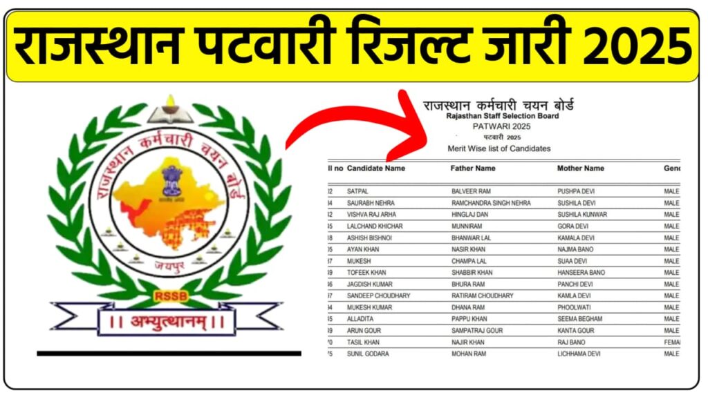 Rajasthan Staff Selection Board (RSSB) has released the result of Patwari Recruitment Exam 2025 on its official website. The exam was conducted on August 17, 2025, and the last date for submission of application form was March 23, 2025. Candidates can check the result by visiting the official website.