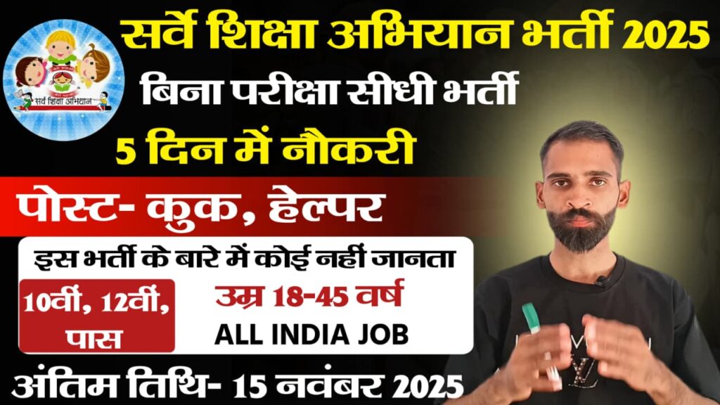 Sarva Shiksha Abhiyan Vacancy 2025: A notification has been issued for recruitment to various positions, including cooks and helpers, under the Sarva Shiksha Abhiyan. Interested candidates can apply through the official website. There will be no exam for this recruitment. Selection will be based on a direct interview. For more information, please read the official notification.