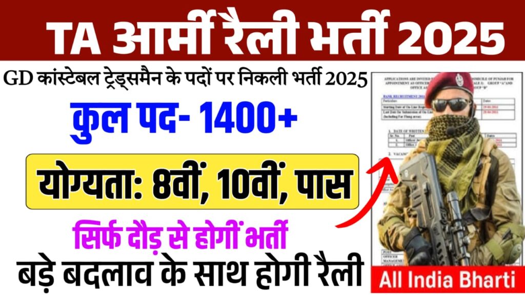 TA ARMY Rally Recruitment 2025 (Total Post 1422) Apply Online